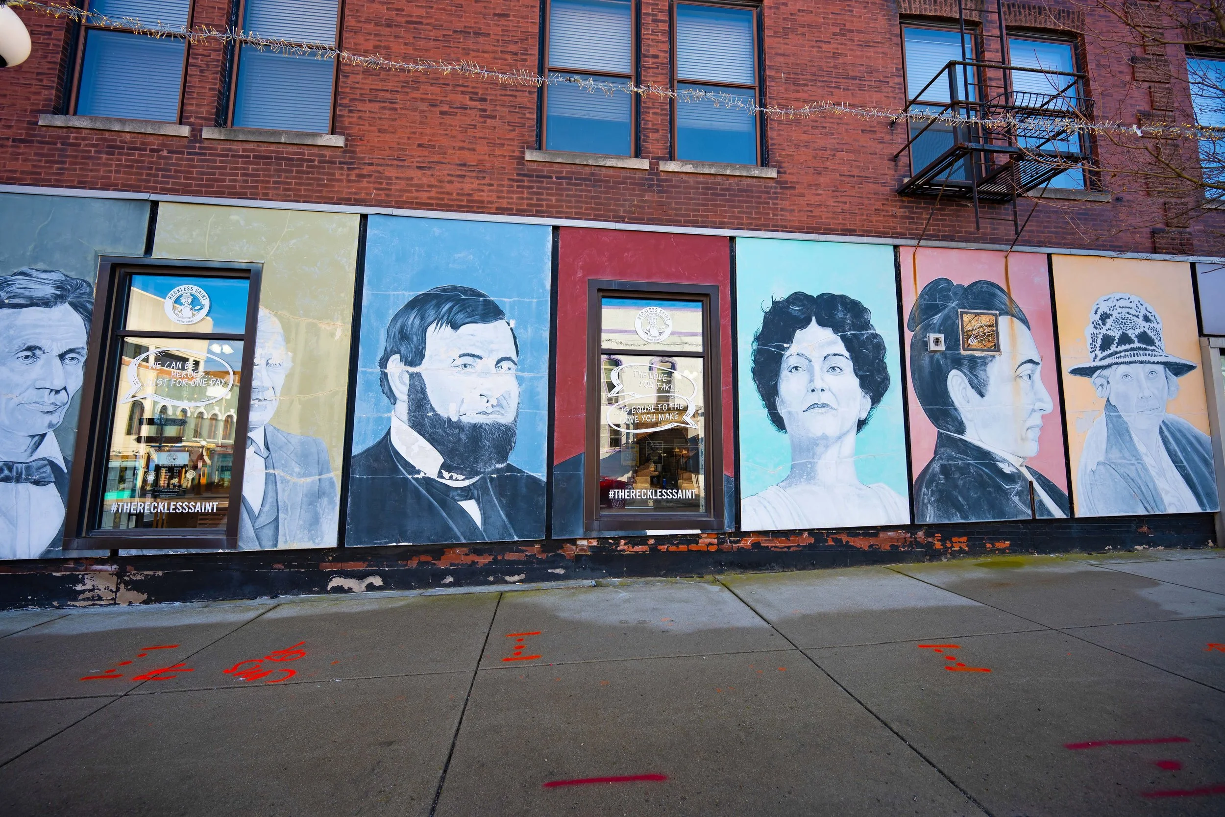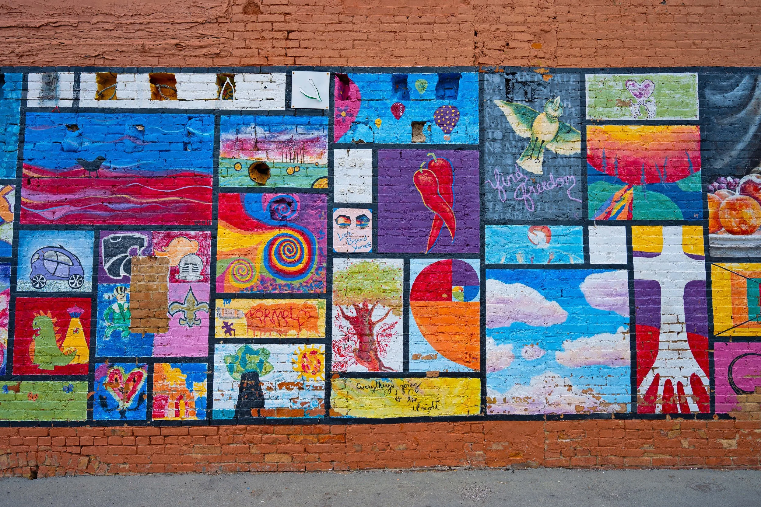 I used to bring high school seniors down here all the time for photos. We’d duck into alleys, use the colorful walls, lean into textured brick. Downtown was always such a good backdrop — gritty but creative. Walking those same streets again brought back so many memories of those sessions.