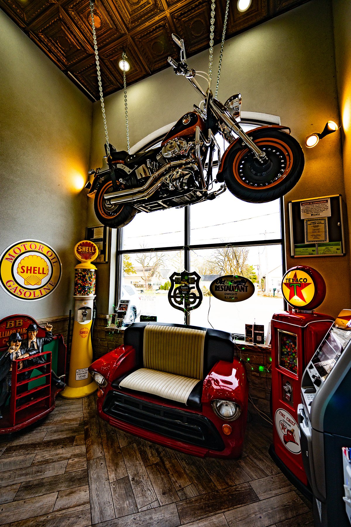 Dwight has a charm that instantly transports you back in time. One of my favorite stops was the restored vintage gas station along Route 66. The old red pumps and historic signage make it feel like you’ve stepped into another era of road trips and cross-country travel. I had read about the restaurant Old 66 Family Restaurant and wanted to check it out. I was so impressed with the outside of the building and the inside. I just bought an order of French Fries so I could share it with Murphy. He loved that. I think I will head back another time and actually sit down and eat because I loved the atmosphere inside and I like splurging on a good hamburger and fries every now and then!